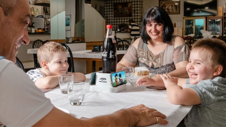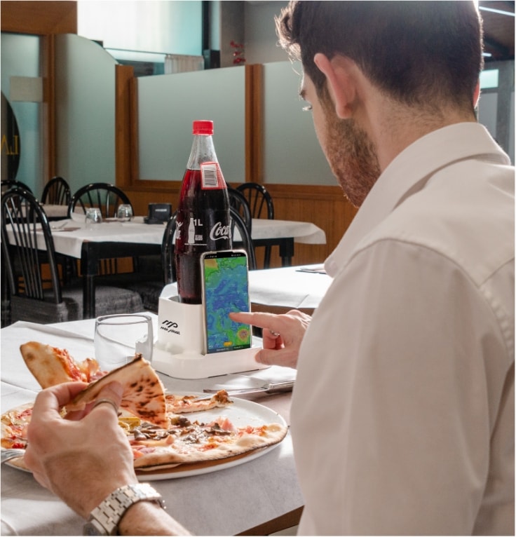 La durata di permanenza a tavola dei clienti è in media 2 ore e 5 minuti, il che significa che 4Phone garantisce una costante visibilità delle pubblicità, aumentando la possibilità che i clienti si ricordino dell’azienda.